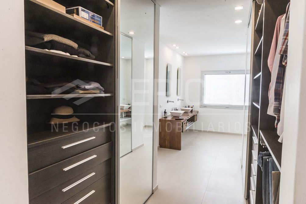 Habitación principal en suite (doble bacha e hidromasaje). con vestidor y salida a balcón aterrazado.