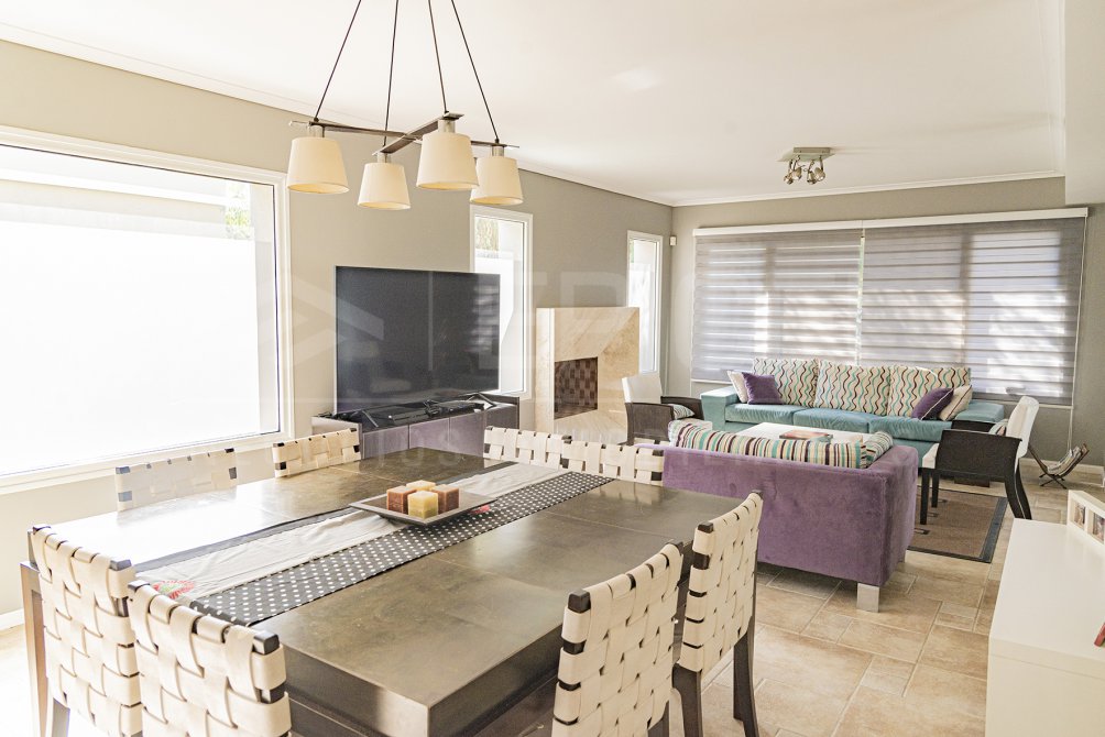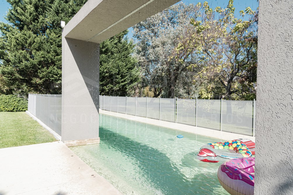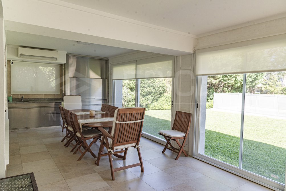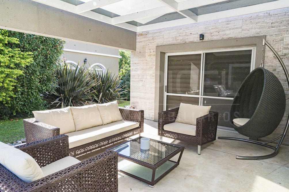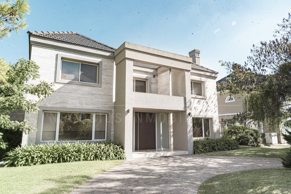 Hermosa casa de 300 m2 totales, desarrollada sobre un terreno de 833 m2. La propiedad se destaca en su exterior por su diseño revestido en mármol travertino y por su amplia piscina {complementada con la orientación sodoeste del lote}. En su interior posee amplios y luminosos ambientes, como el living - comedor y el quincho cerrado, ideales para recibir visitas. Además cuenta con una inmejorable ubicación dentro del country, encontrándose en una central y muy cercano al sector de amenities.