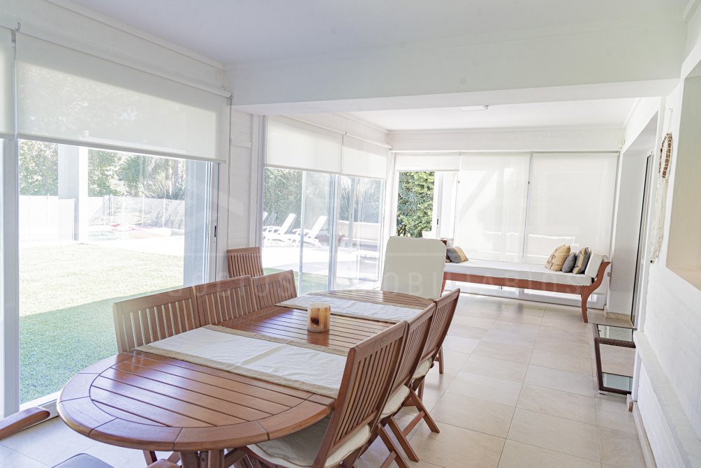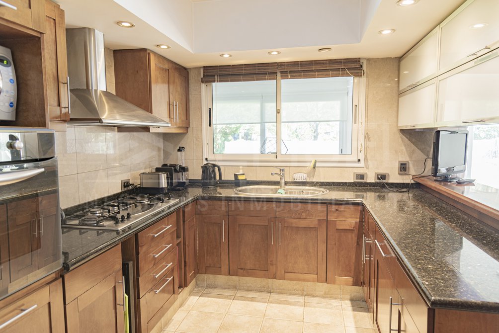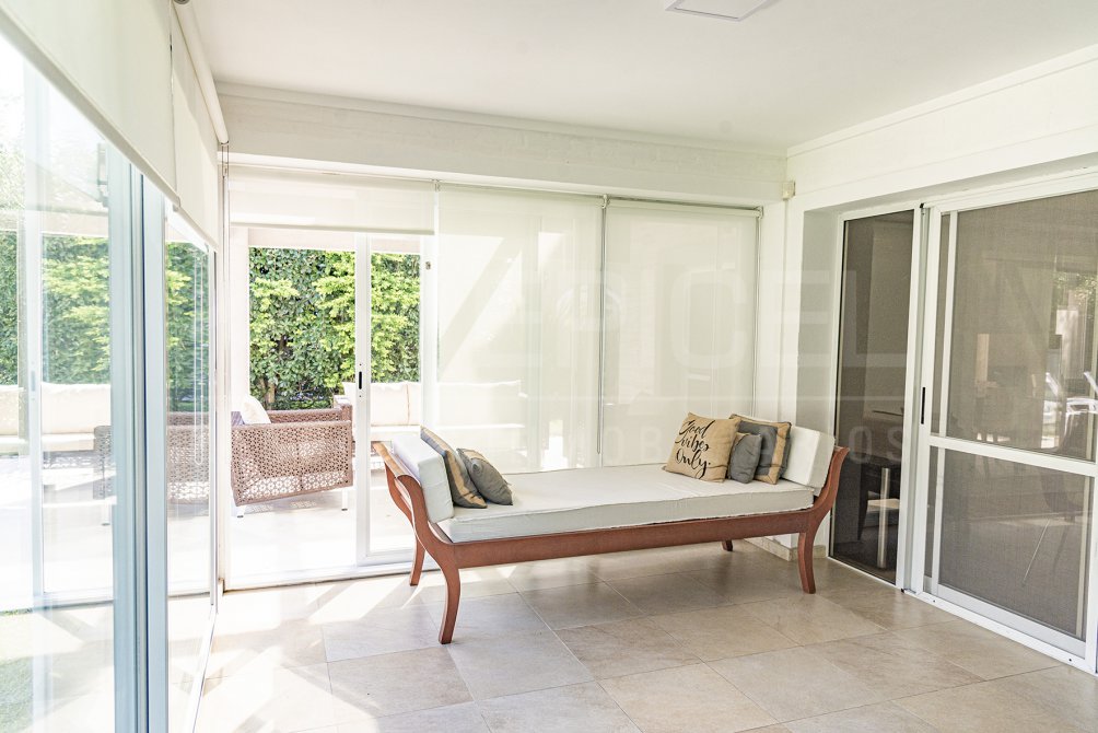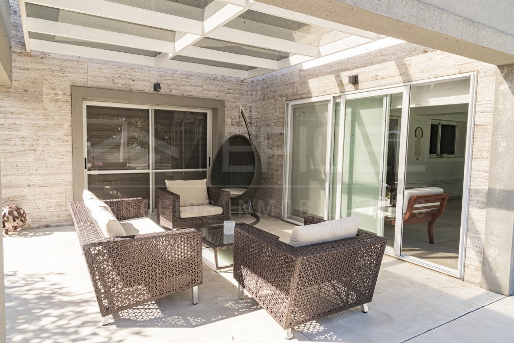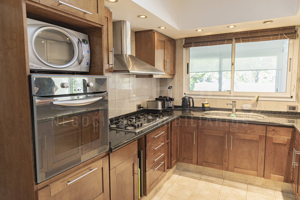 Hermosa casa de 300 m2 totales, desarrollada sobre un terreno de 833 m2. La propiedad se destaca en su exterior por su diseño revestido en mármol travertino y por su amplia piscina {complementada con la orientación sodoeste del lote}. En su interior posee amplios y luminosos ambientes, como el living - comedor y el quincho cerrado, ideales para recibir visitas. Además cuenta con una inmejorable ubicación dentro del country, encontrándose en una central y muy cercano al sector de amenities.