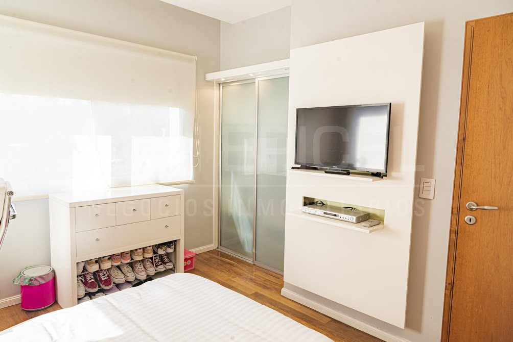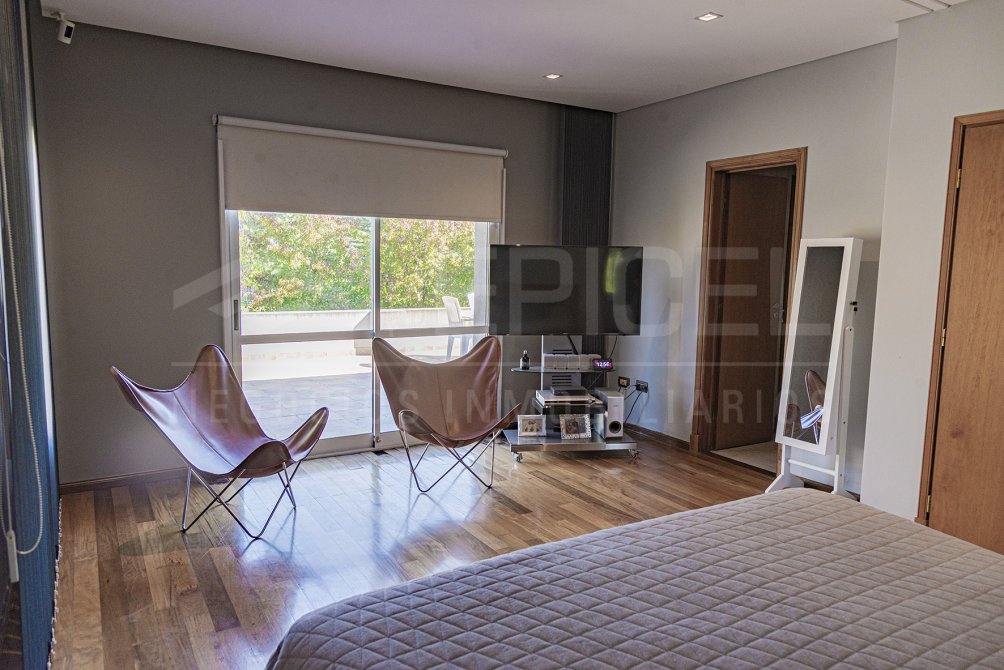 Habitación principal en suite (compartimentado, con box de ducha e hidromasaje) con vestidor y salida a balcón aterrazado con vista al jardin.