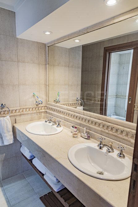 Habitación de huéspedes en semisuite {con el baño arriba mencionado}.