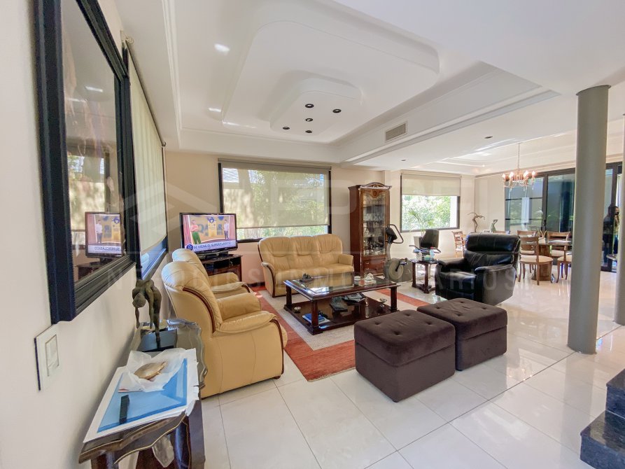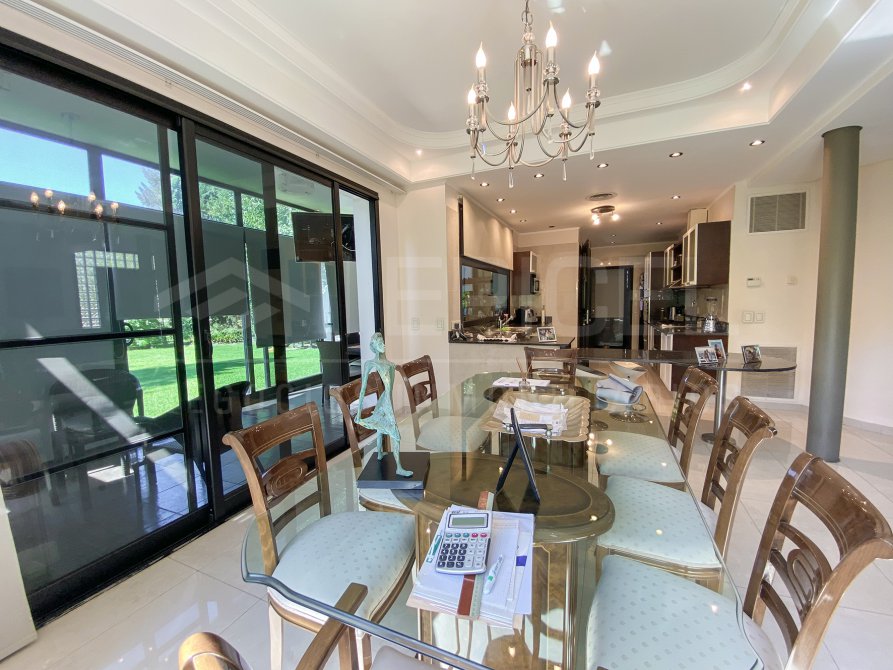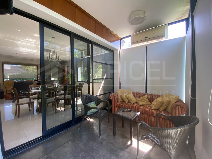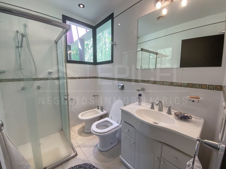 La casa cuenta con aberturas DVH, calefacción por losa radiante, refrigeración por aire acondicionado central, pisos de porcelanato, escalera de mármol, grupo electrogeno a gas y riego por aspersión.