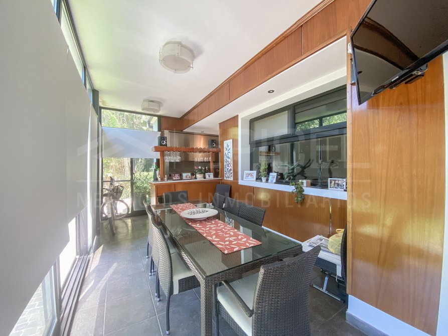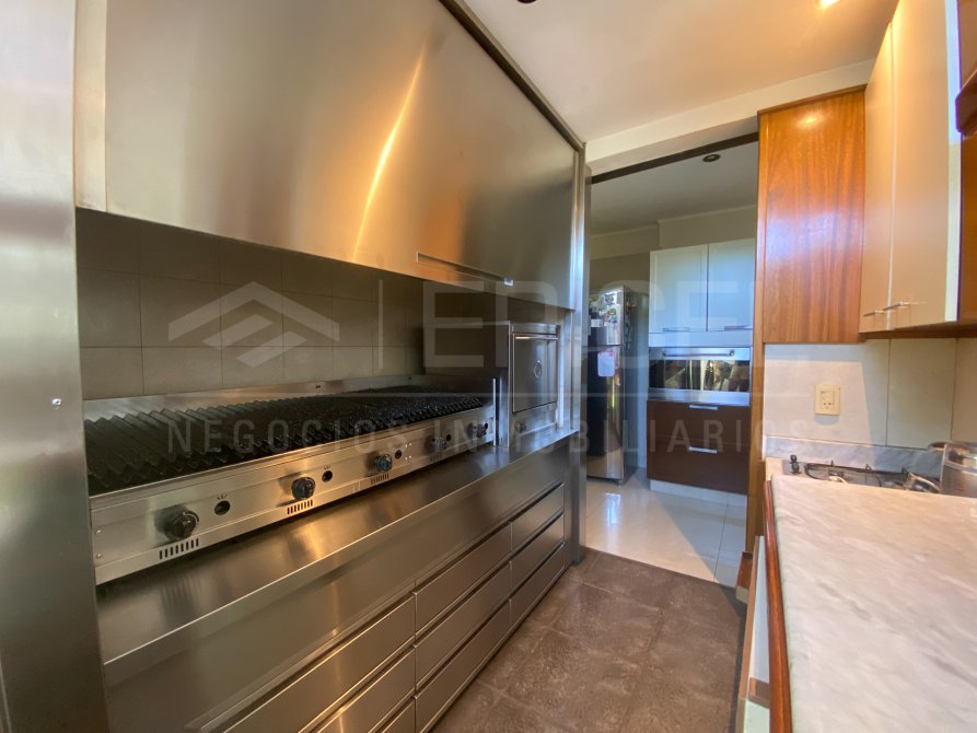 Quincho cerrado con minibar, parrilla a gas, horno pizzero, anafe y bacha.