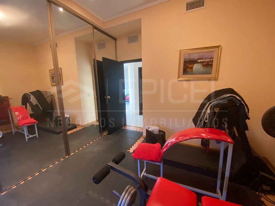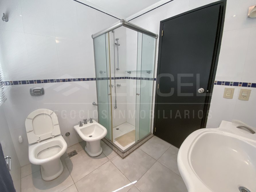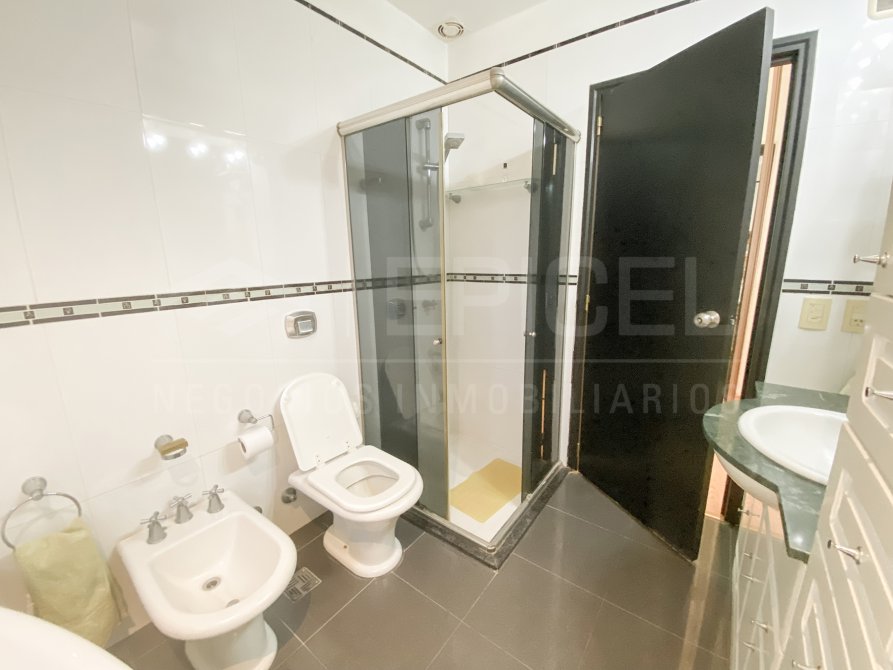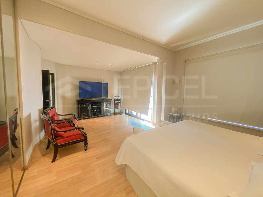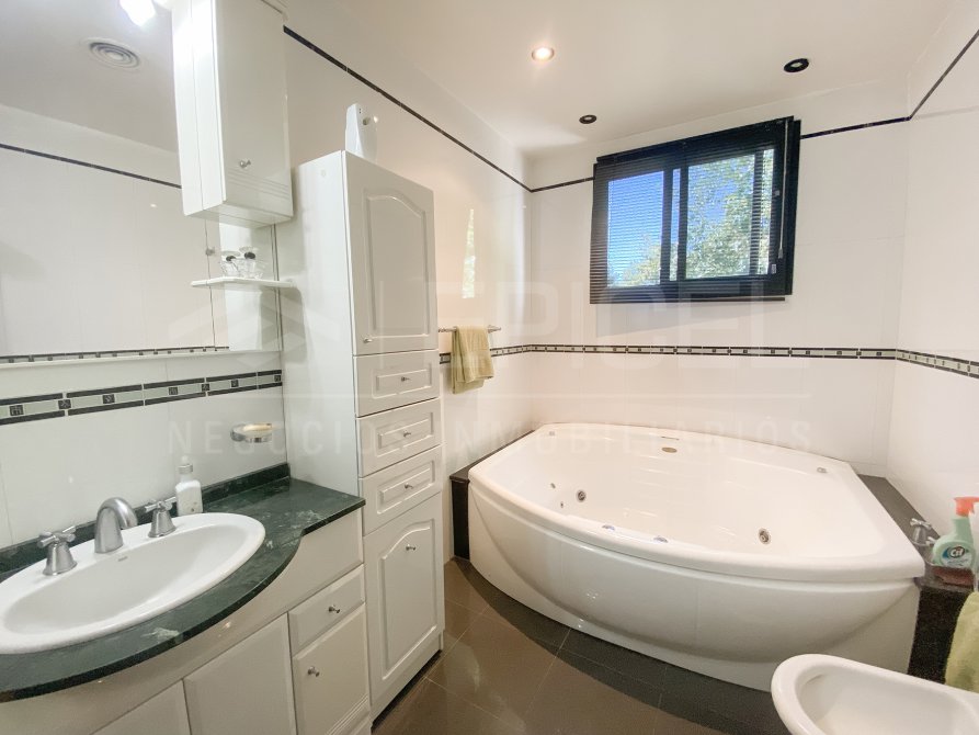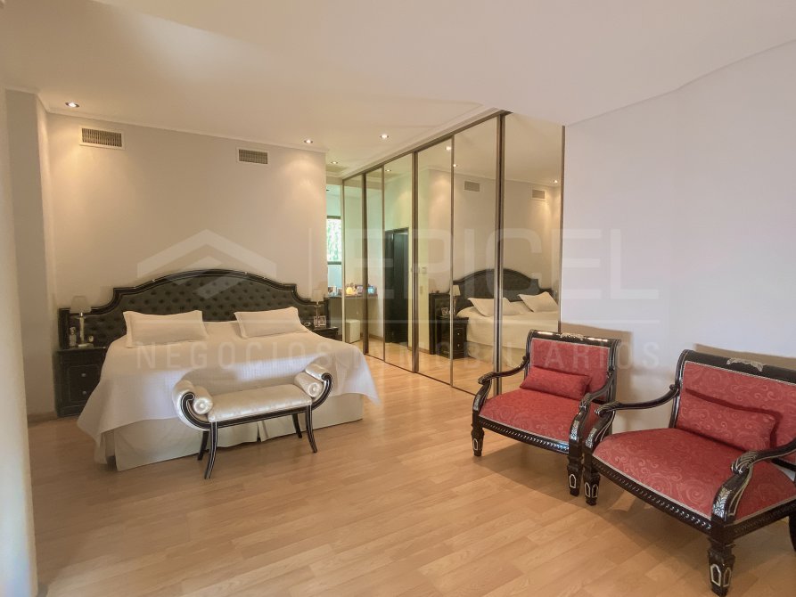 Habitación principal en suite (hidromasaje y box de ducha) con placard y balcón aterrazado