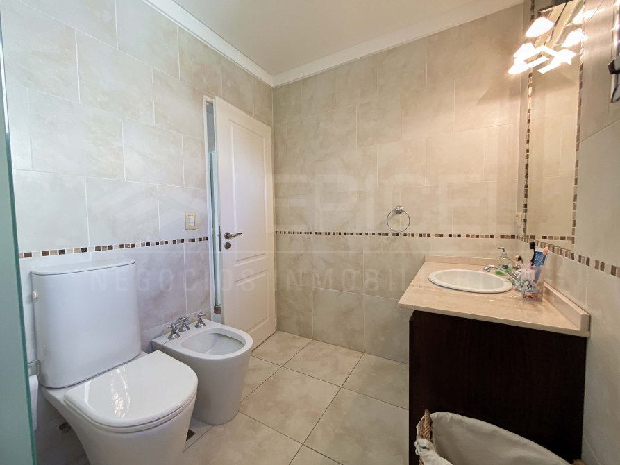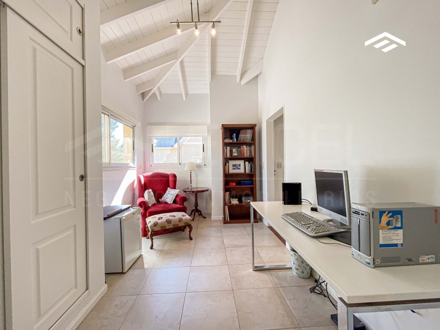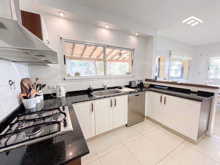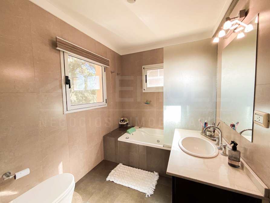 La casa cuenta con calefacción por losa radiante, refrigeración por splits en ambientes y aberturas DVH.