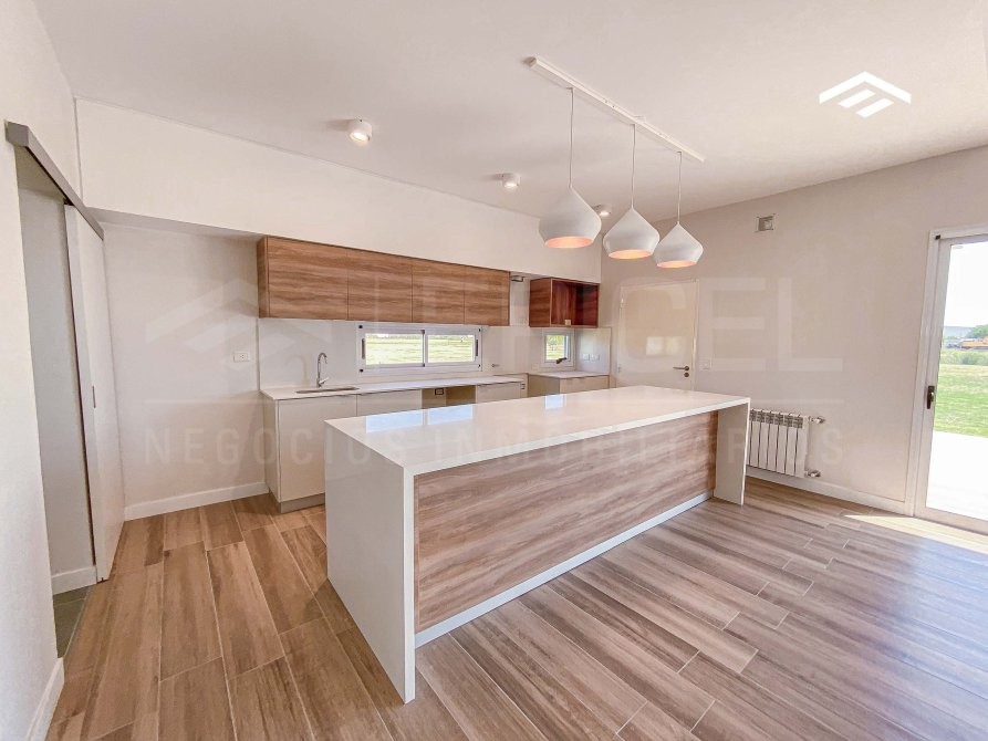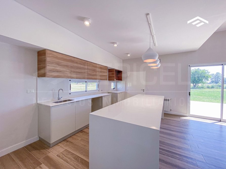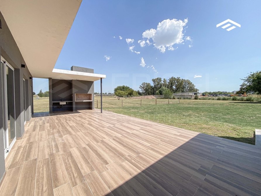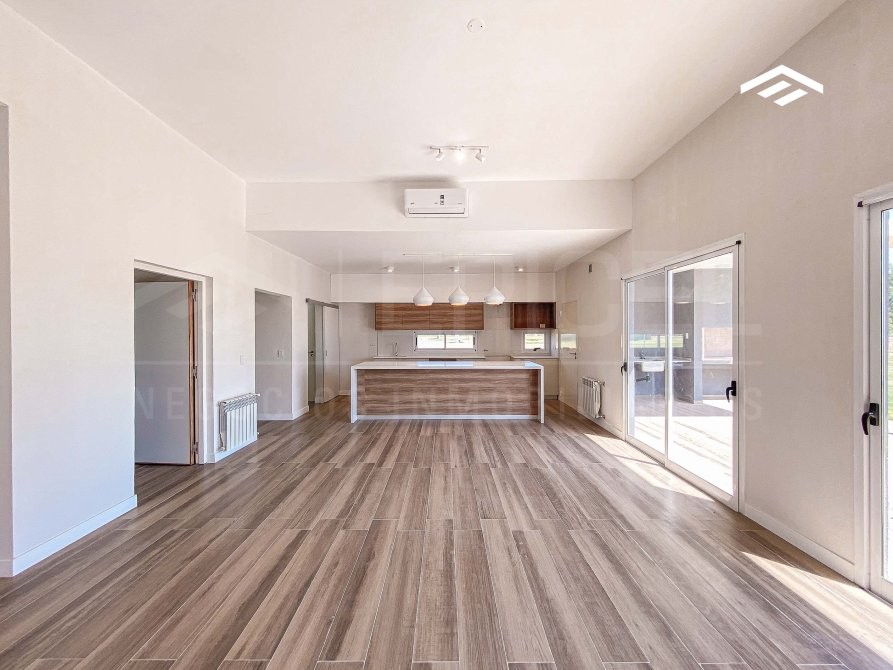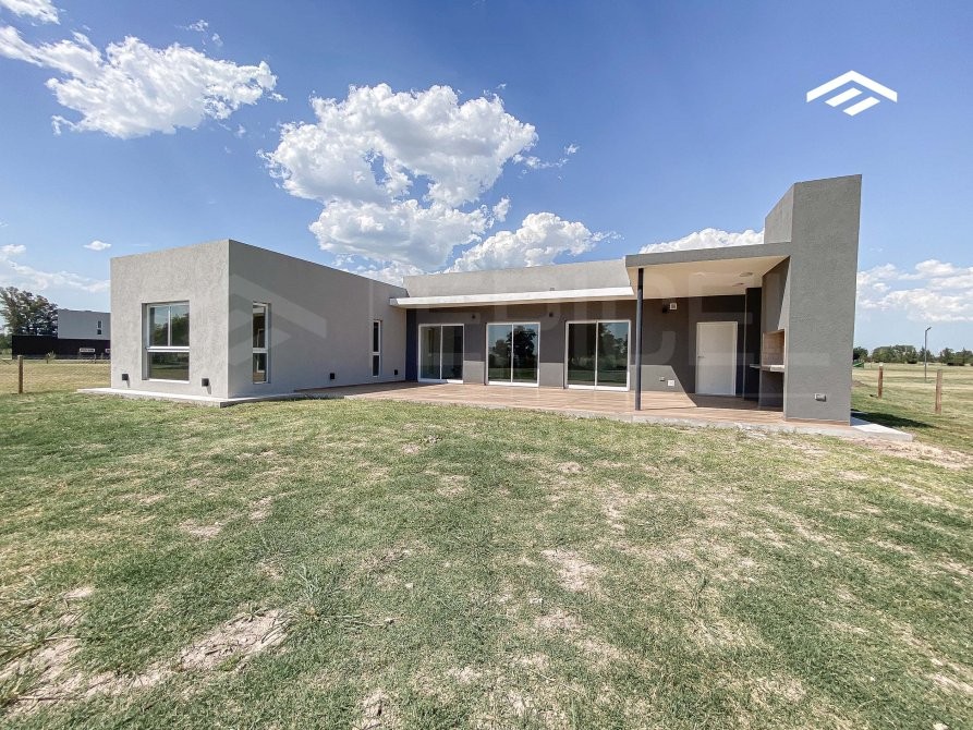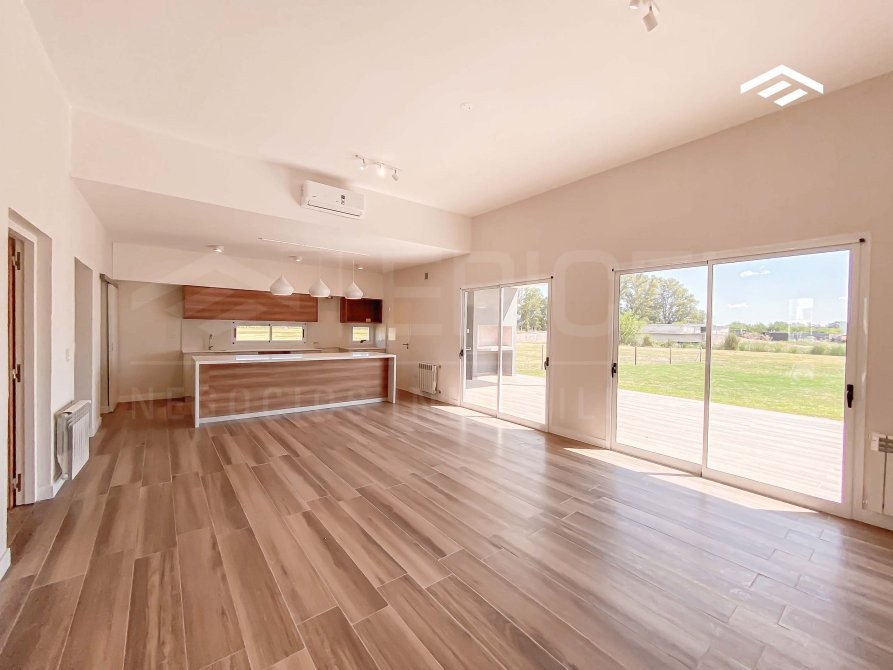 Excelente casa a estrenar de 214 m2 totales, desarrollada completamente en planta baja sobre un lote de 1.080 m2, con diseño moderno, ambientes amplios y excelente luminosidad natural.