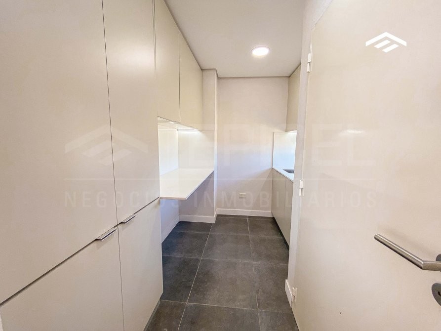 • Lavadero independiente, conectado por puerta granero, con mesada de Silestone, bacha Johnson, alacena y bajo mesada