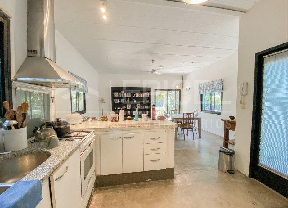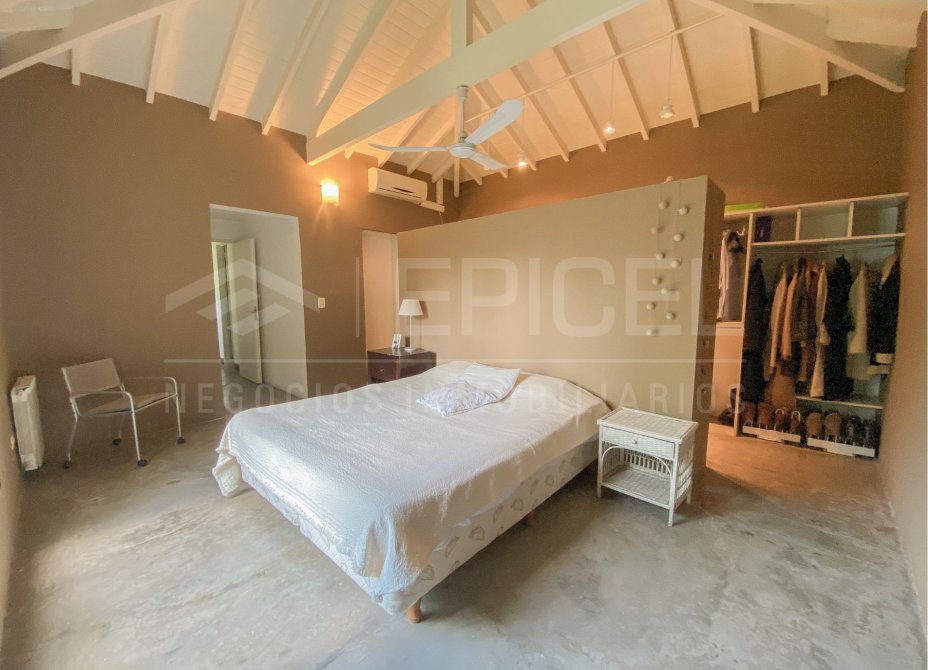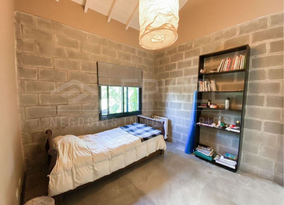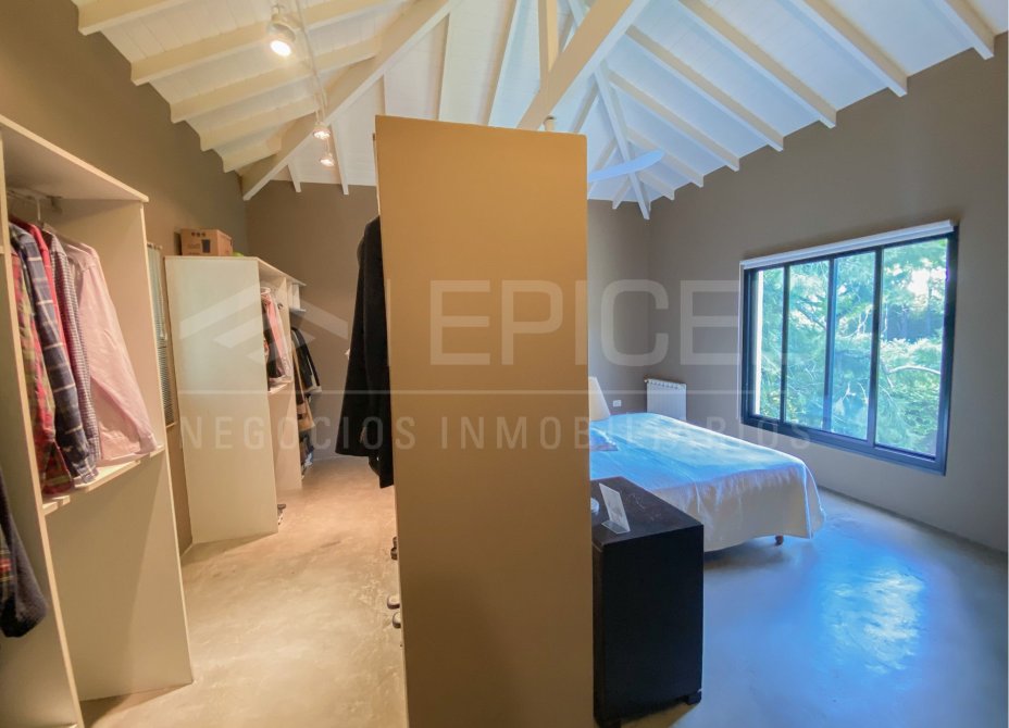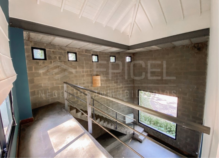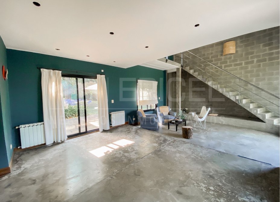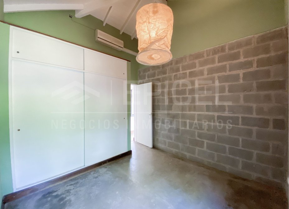Casa de 205 m2 desarrollada sobre un lote de 833 m2. Ubicada en la primera calle del barrio con cercanía al ingreso y portería del mismo. Se caracteriza por tener ambientes formales amplios, tener doble acceso a planta alta y tener un extenso jardín.