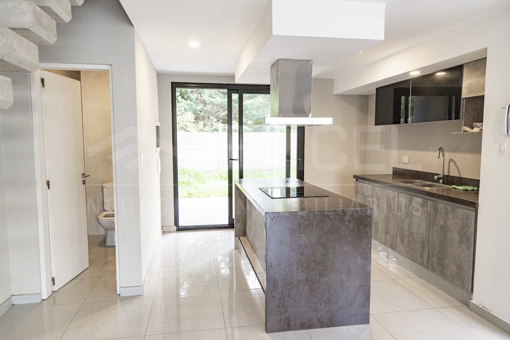 La unidad cuenta con pisos de porcelanto pulido en planta baja y de porcelanato simil madera en planta alta; aberturas DVH; sanitarios Ferrum y griferias FV; muebles de cocina en melamina, mesadas de granito y bacha doble de acero inoxidable; calefacción y refrigeración instalación provista para la colocación de splits frío-calor (equipo ya colocado en planta baja).