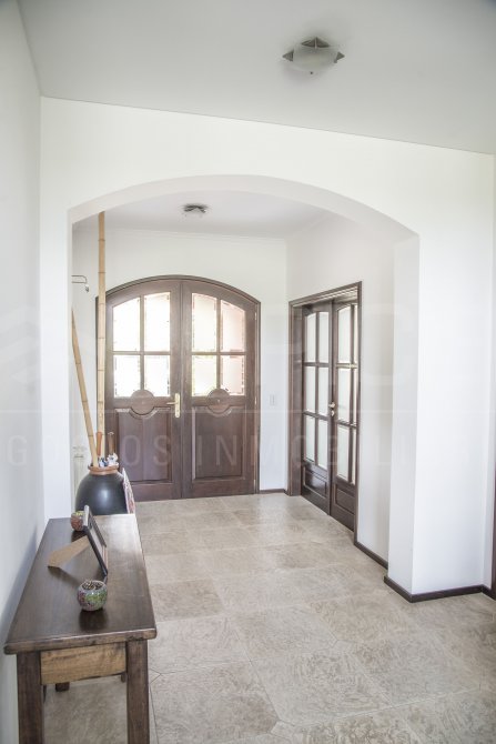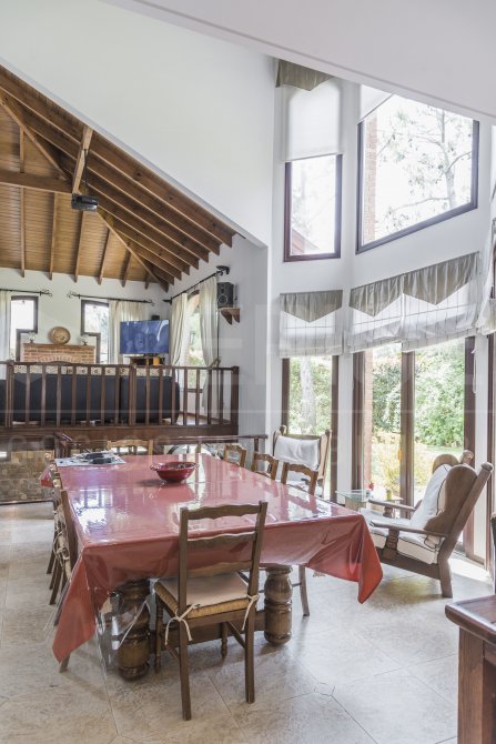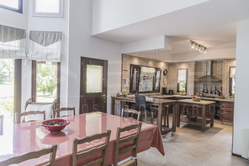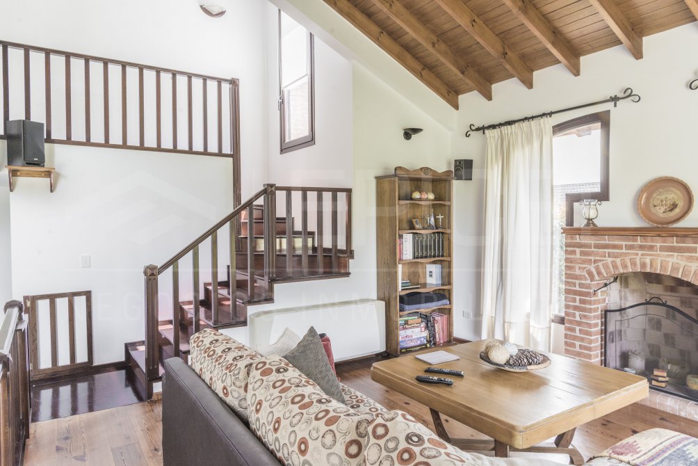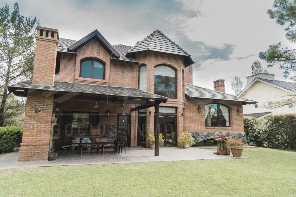 Hermosa casa de estilo country de 350 m2 totales, desarrollada en 2 plantas sobre un lote de 814 m2. Destaca por sus ambientes amplios y funcionales. Buena calidad constructiva y ubicada en una calle central del barrio, a solo una cuadra del área deportiva y recreativa.