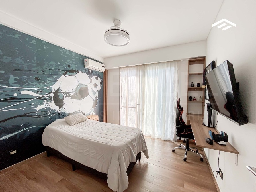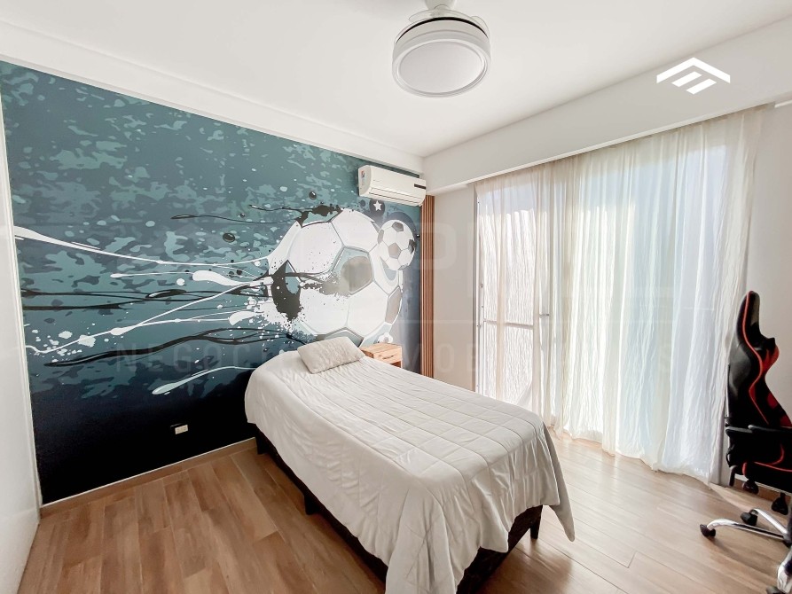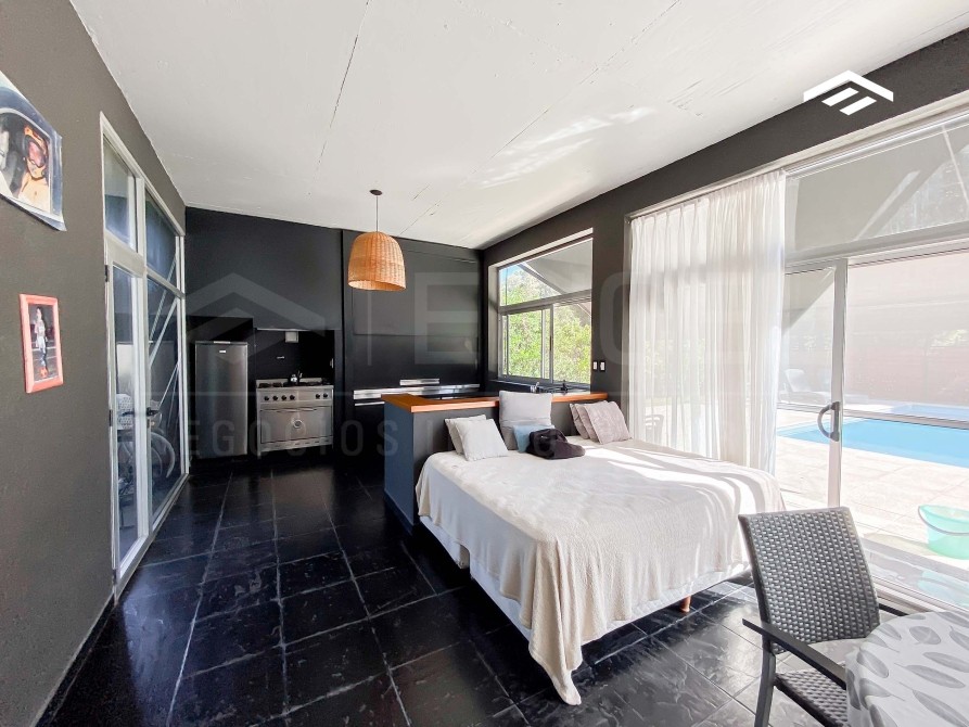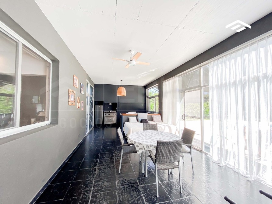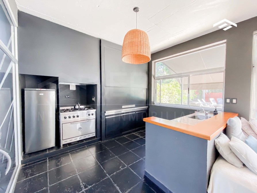 Amplio quincho cerrado con parrilla , bacha y barra. 2 ventiladores de techo y preparado para colocar splits