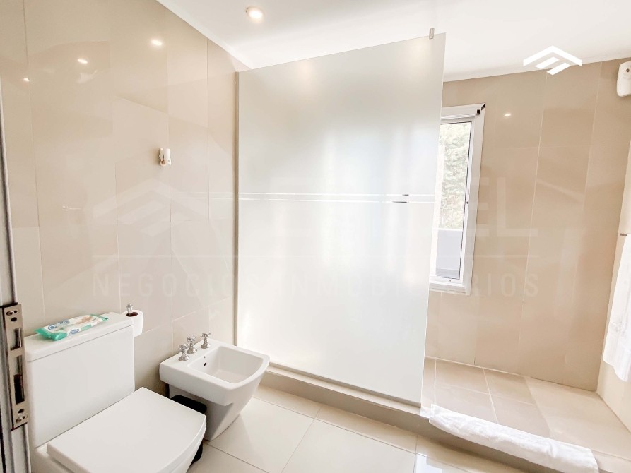 La casa cuenta con calefacción refrigeración por splits, aberturas dvh con cámara de aire y marcos de aluminio, pisos porcelanato simil madera