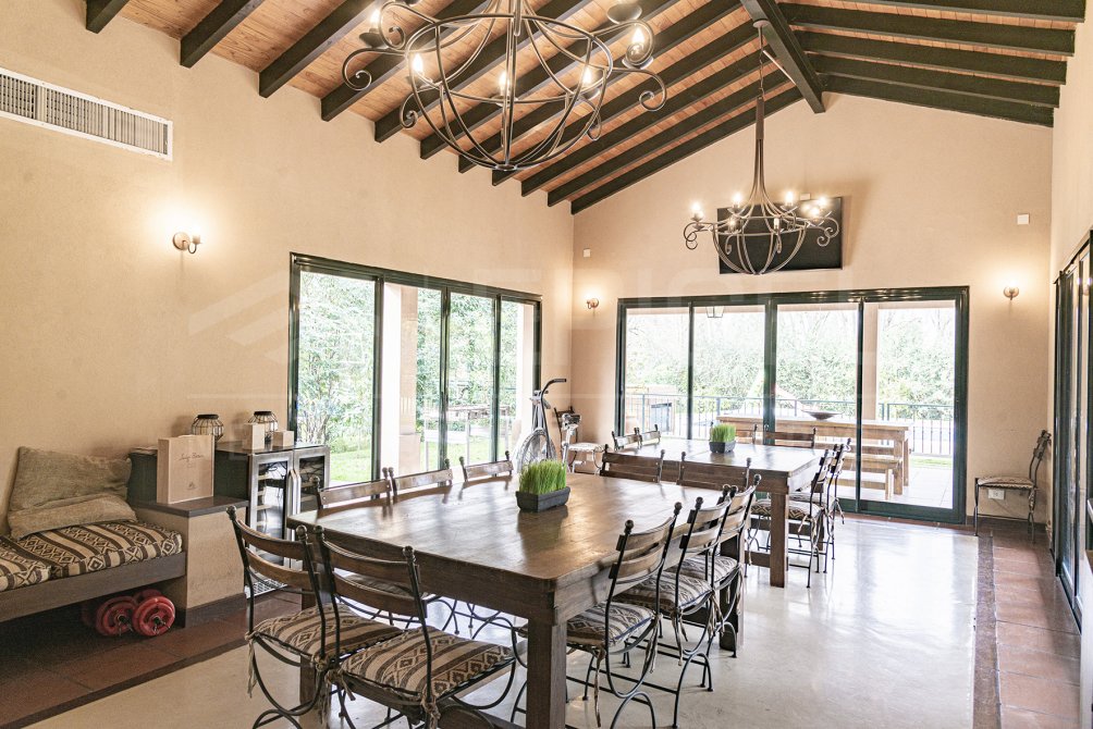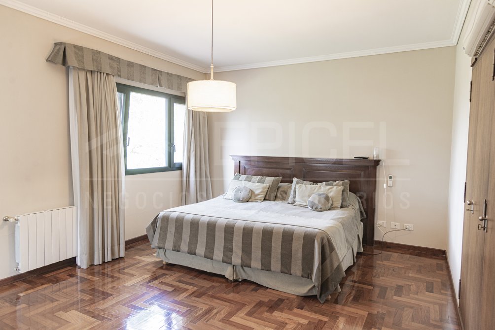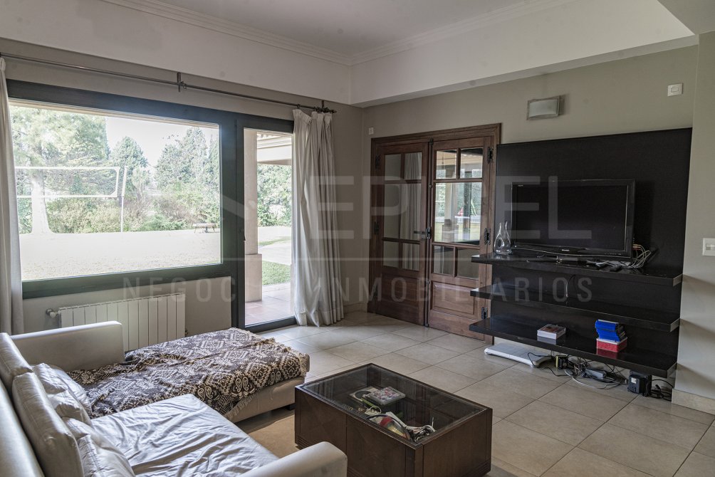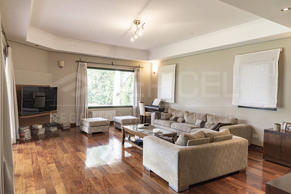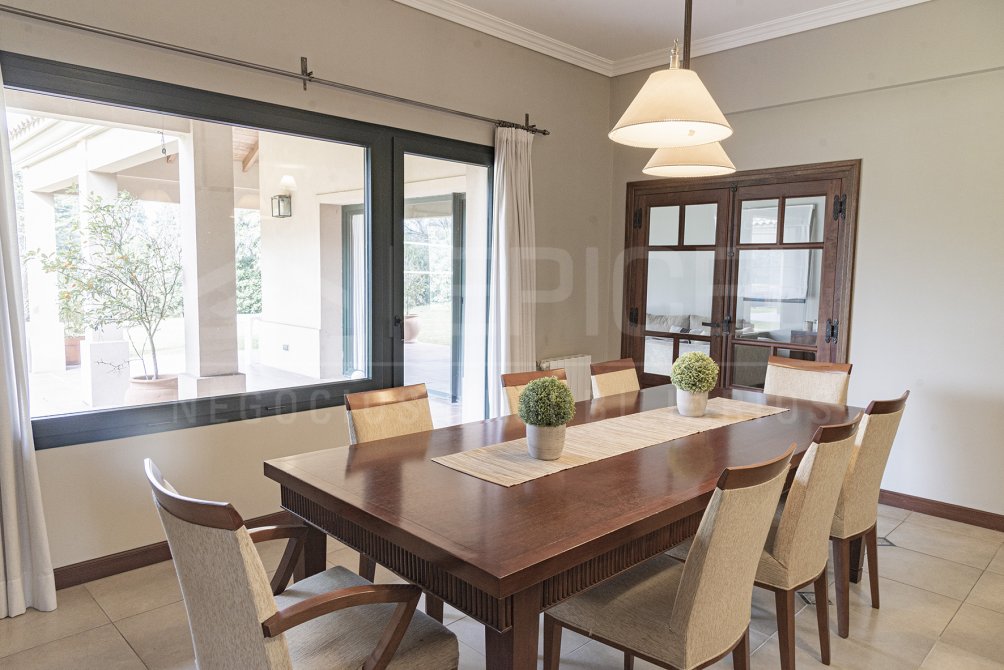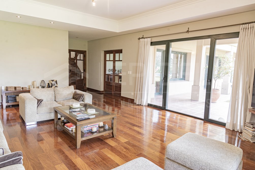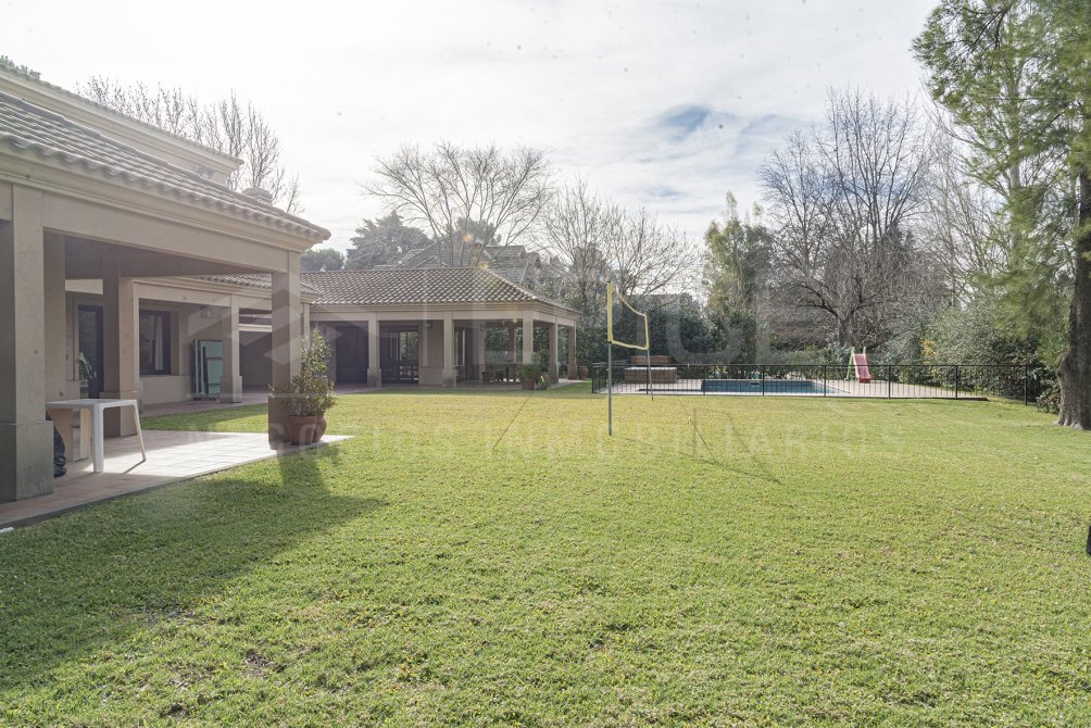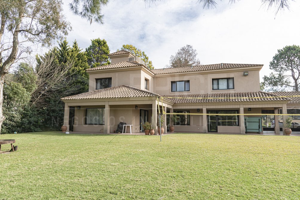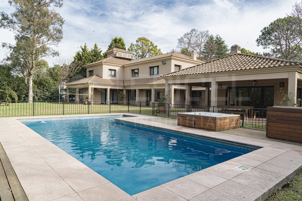 Excelente casa de 590 m2 totales emplazada sobre un doble lote de 1668 m2. La casa se destaca por la distribución de sus ambientes formales, por contar con 5 habitaciones y 6 baños. Además posee un amplio quincho equipado que se complementa con un extenso jardín y una piscina con jacuzzi. Su excelente ubicación dentro del country permite la cercanía a las áreas comunes y deportivas.