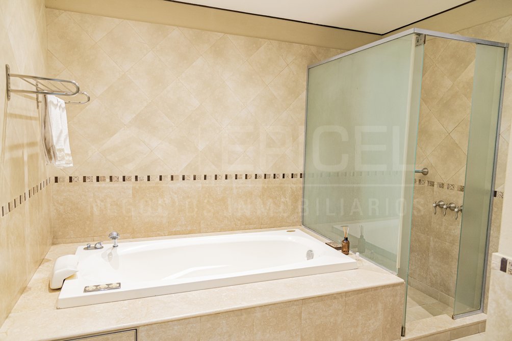 Habitación principal en suite (baño compartimentado, doble bacha, hidromasaje y box de ducha) con vestidor y placard.