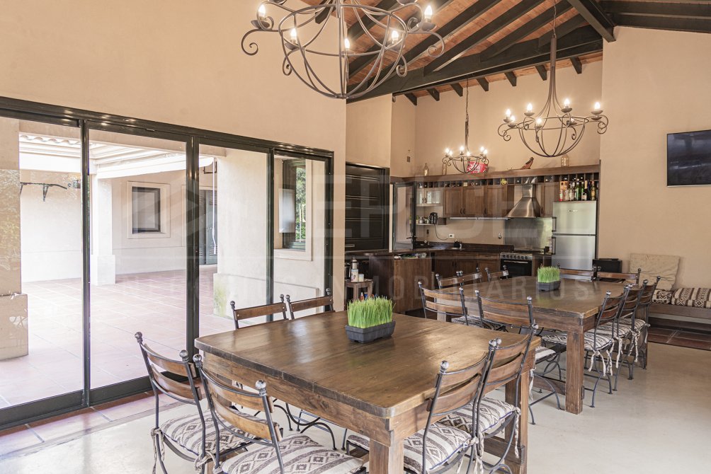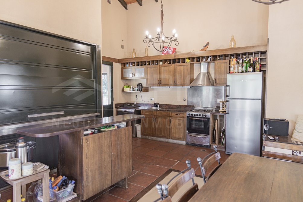 Amplio quincho cerrado equipado con cocina (cocina, lavavajilla y heladera) y parrilla (parrigas y a leña); acondicionado con equipo de aire frío/calor.