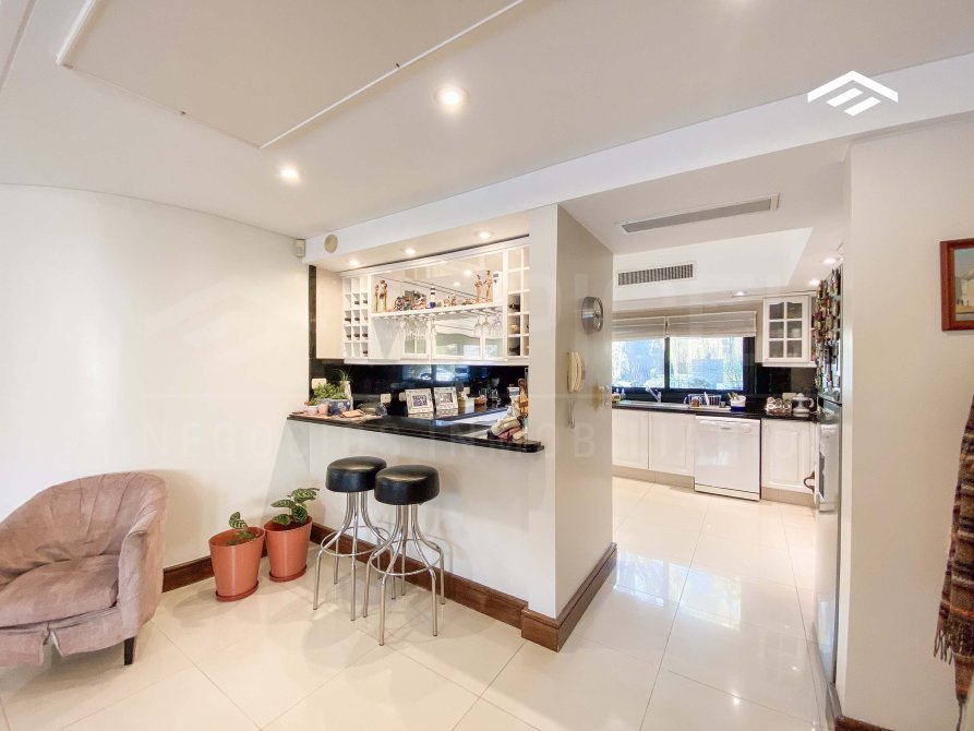 - Cocina con isla, bacha, anafe, campana marca Ariston y amplio comedor diario con salida al jardín y quincho