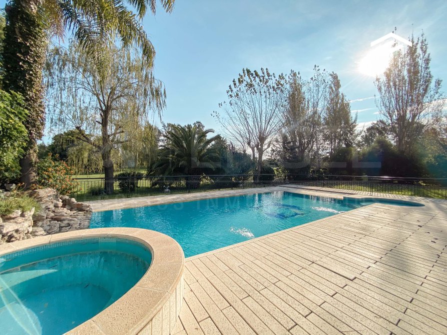 Viví el máximo confort en esta imponente propiedad ubicada en uno de los barrios más exclusivos de Canning. Una casa única por sus dimensiones, calidad constructiva y diseño funcional, pensada para disfrutar cada rincón con privacidad, estilo y comodidad. Desarrollada sobre doble lote, con ambientes amplios, sector de spa, pileta climatizada, cine, quincho cerrado, y una increíble vista al golf.