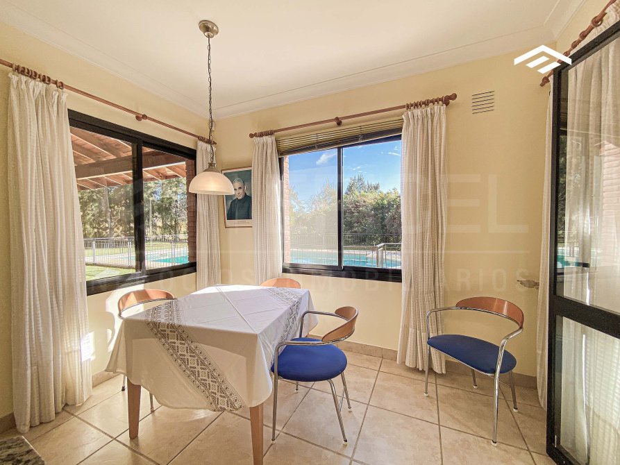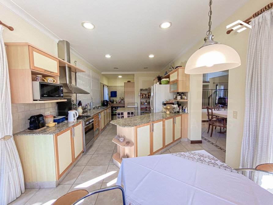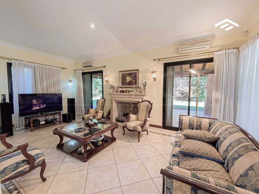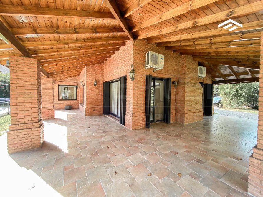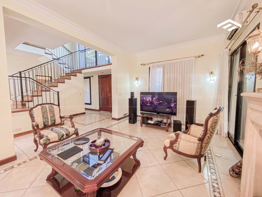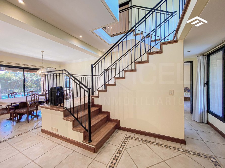 Ubicada en uno de los barrios más exclusivos de la zona, esta residencia de categoría se encuentra en un lote especial de 1.157 m² en cul de sac, con solo un vecino lindero, lo que garantiza máxima privacidad y tranquilidad. La casa cuenta con una superficie total de 340 m² distribuidos en dos plantas, con una sólida construcción, excelente distribución funcional y detalles de alta calidad. El diseño combina elegancia clásica, ofreciendo ambientes amplios, luminosos y perfectamente integrados, ideales para la vida diaria y recibir visitas. La propiedad incluye un parque arbolado, quincho cerrado, piscina revestida, y espacios pensados para el confort y la funcionalidad.