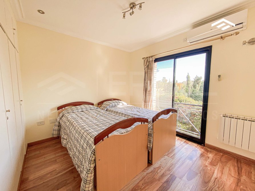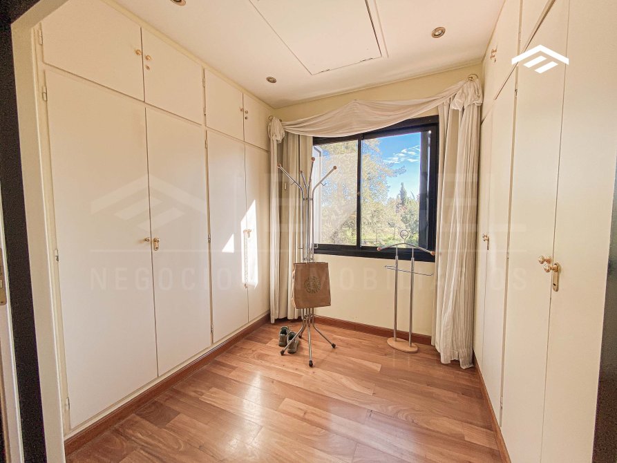 - Altillo en una de las habitaciones, con acceso por escalera estilo americana, revestido en madera, con vista al jardín y una superficie de 1,5 x 2,5 m, ideal como sector de juegos o guardado.